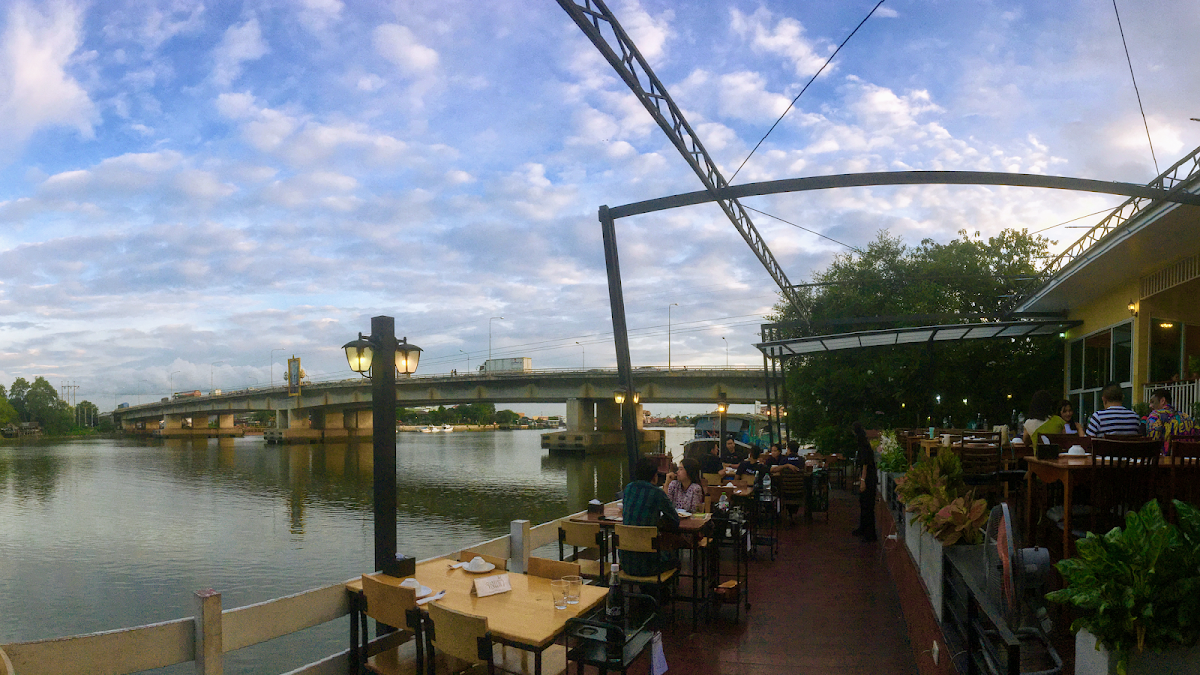 I had an incredible dinner experience at this beautiful riverside restaurant, located just an hour outside of Bangkok. The setting is perfect for group gatherings, making it an excellent choice for office events or larger parties. The atmosphere in the evening is especially stunning, with peaceful views of the Chao Phraya River and the bridge illuminated under the night sky. The seafood was exceptionally fresh and flavorful—the huge river prawns were a standout, cooked to perfection. The menu also offered delicious soft-shell crabs and fresh blue crabs, and although they didn’t have mud crabs, the alternatives were fantastic. The food came quickly, and the service was attentive and friendly, with the staff making sure we had everything we needed. The evening breeze and peaceful ambiance made the experience even more enjoyable. With ample parking and a relaxed atmosphere, this is the perfect place for a memorable dinner gathering. I highly recommend it and will definitely be coming back for another wonderful evening.